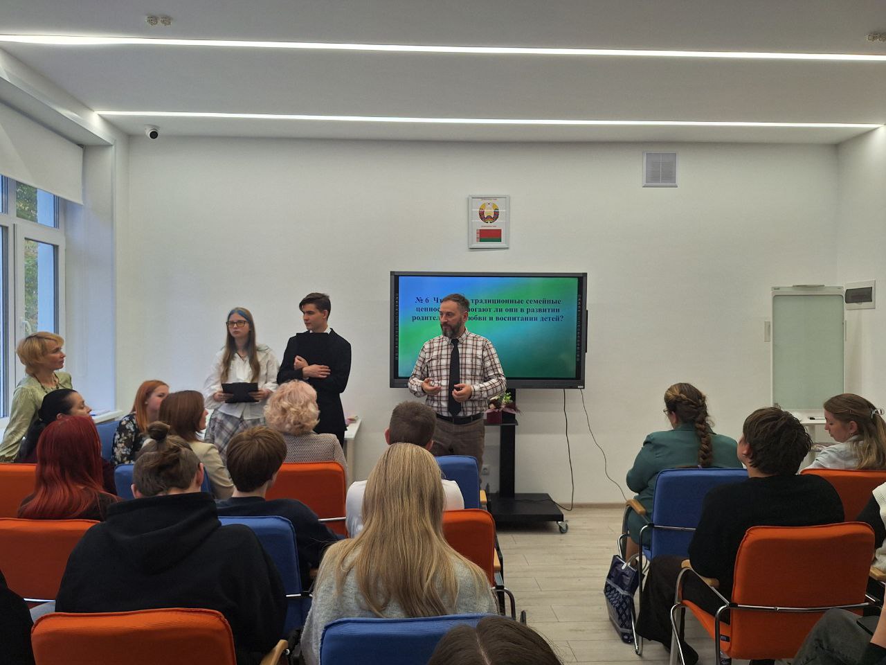 Экспертами в данной дискуссии стали почетные гости мероприятия: иерей Макарий Анатольевич Ковалев, клирик Свято-Духова кафедрального собора г. Минска; представители Благотворительного фонда поддержки семьи, материнства и детства «Покров» Оксана Михайловна Плютова, методист, и Руслан Александрович Писаренко, православный психолог, многодетный отец; Светлана Евгеньевна Панкратова, телеведущая, председатель оргкомитета Международного фестиваля социальной рекламы в защиту жизни и семьи «Ладошка», многодетная мама; Елена Валерьевна Дмитриева, начальник отдела по воспитательной работе с молодежью Института теологии имени святых Мефодия и Кирилла Белорусского государственного университета; Юлия Сергеевна Миловзорова, заместитель декана по идеологической и воспитательной работе социально-экономического факультета Белорусского государственного экономического университета; Лилия Витольдовна Андреева, многодетная мама, воспитатель ГУО «Детский сад 436 г. Минска», семейный консультант в римско-католическом приходе Божьего Цела г. Минска, выпускник факультета дошкольного образования БГПУ им. М. Танка; Татьяна Станиславовна Аверьянова, заместитель декана по идеологической и воспитательной работе факультета дошкольного образования, старший преподаватель кафедры общей и детской психологии БГПУ. Эксперты комментировали, обогащали ответы студентов и делились опытом успеха построения счастливых семейных отношений и воспитания детей.