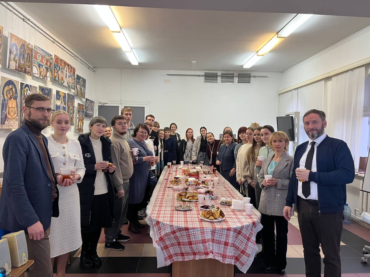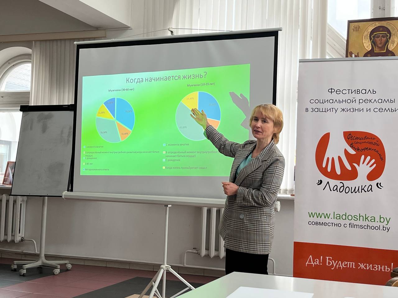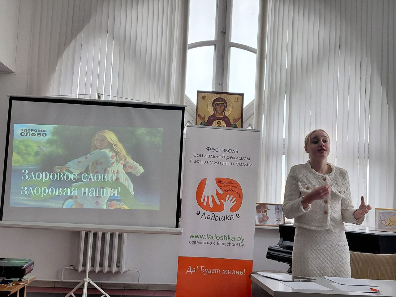 Затем состоялась встреча протоиерея Игоря Коростелева, настоятеля прихода храма в честь иконы Божией Матери “Всех скорбящих Радость”, духовника Международного фестиваля социальной рекламы в защиту жизни и семьи “Ладошка”, со студентами и преподавателями минских учреждений образования.